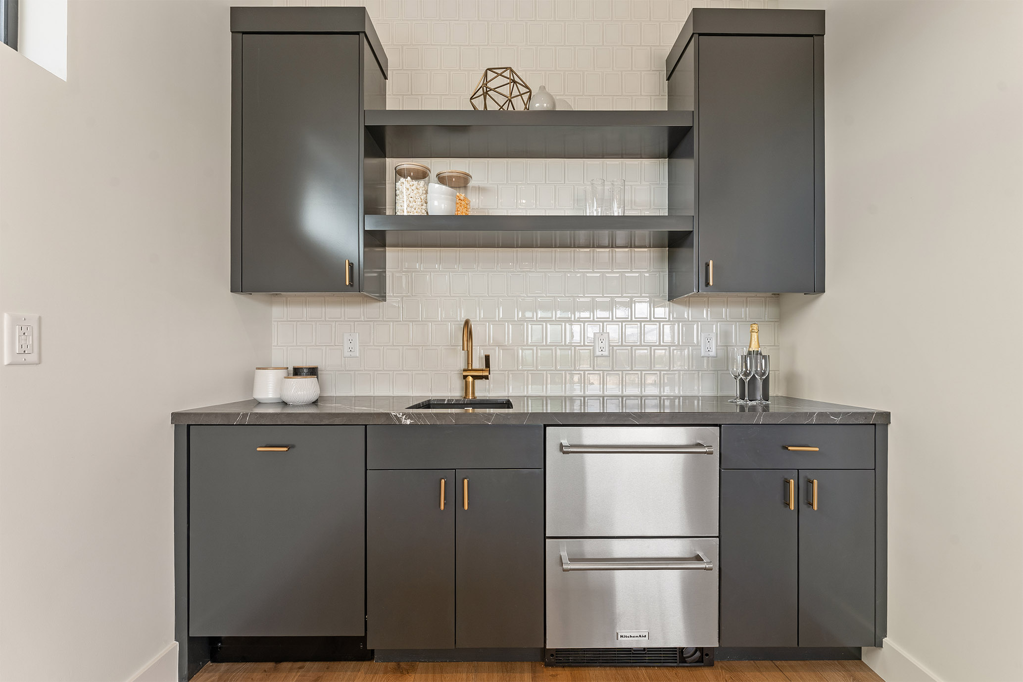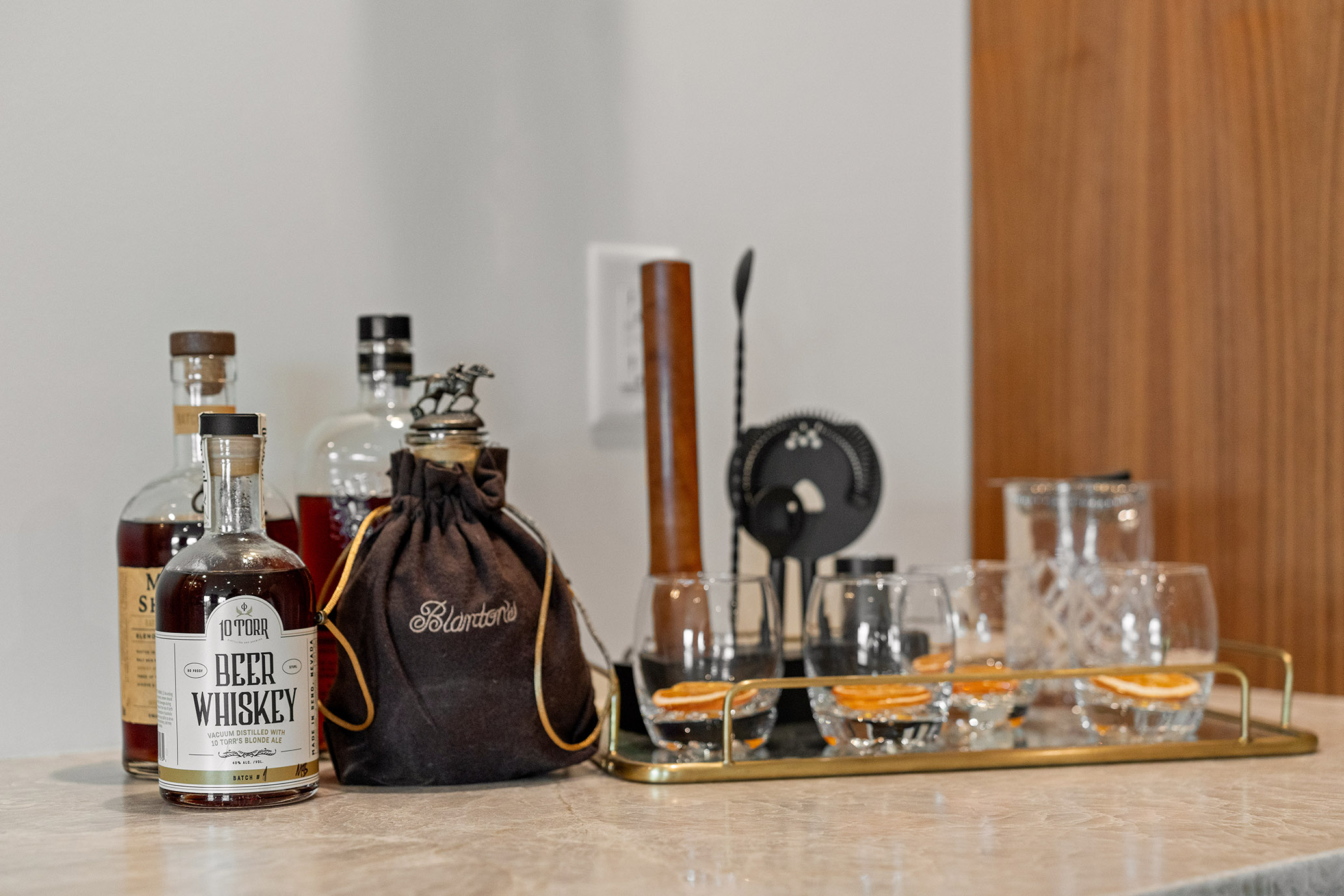 Upstairs, is a ~600-square-foot bonus room and large covered balcony are the ideal place to enjoy informal gatherings and take in the impressive city views. A wet bar and fifth full bathroom complete this versatile space.