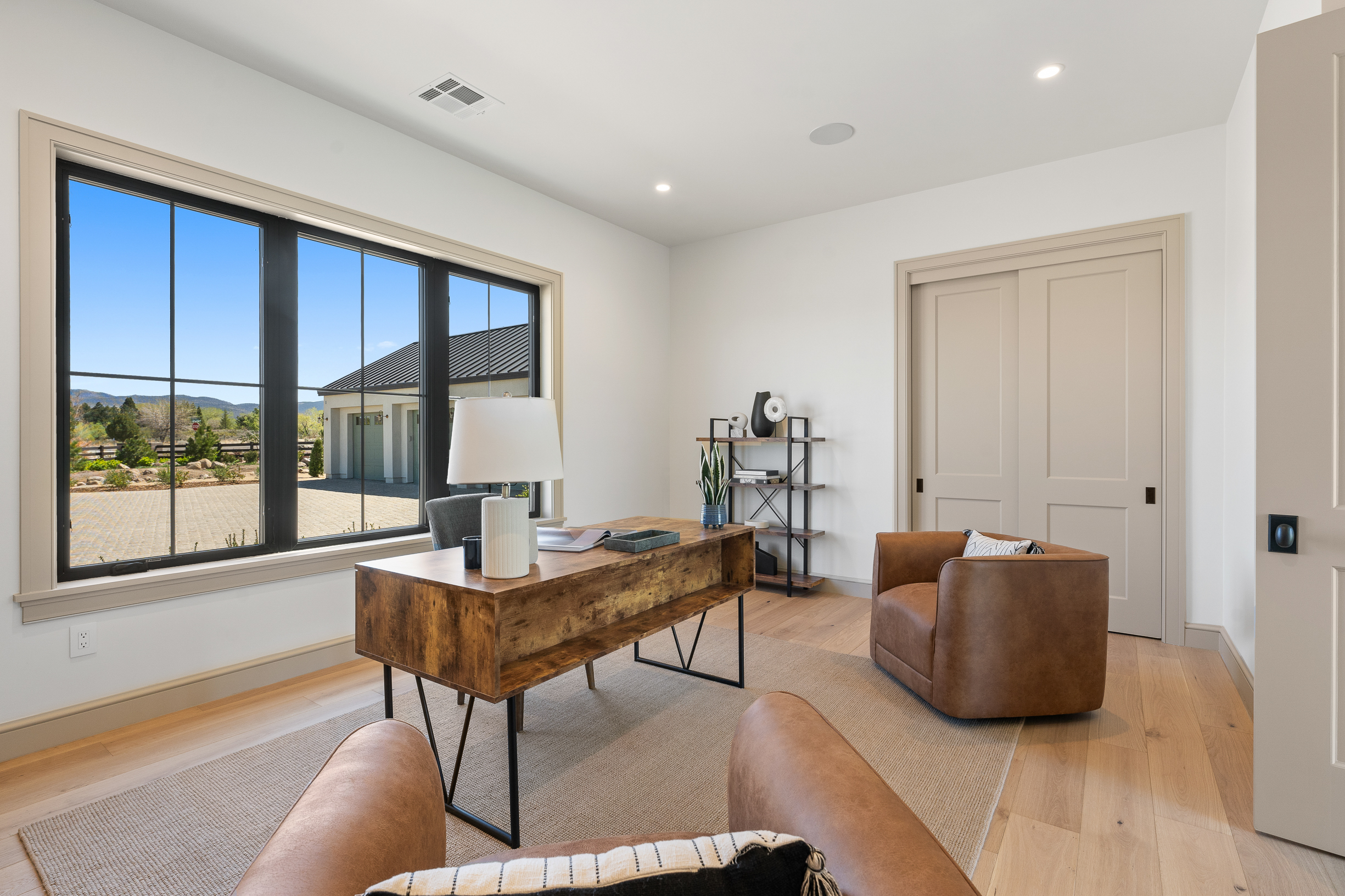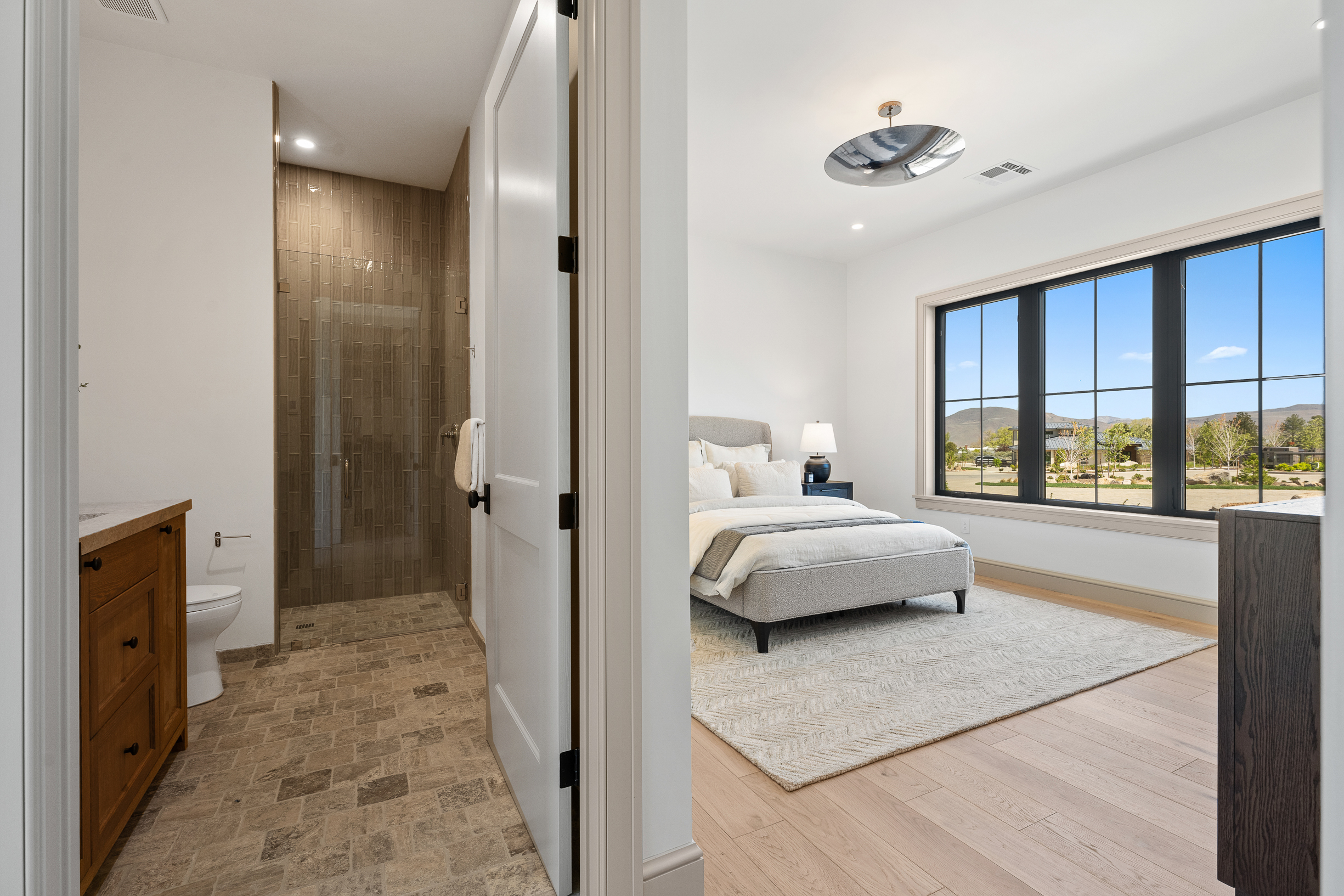 Set on 2.9 acres within Glenhaven—a private, gated enclave in the desirable Holcomb Ranch area of South Reno—this newly completed single-level residence embodies a rustic yet refined Napa farmhouse aesthetic, thoughtfully interpreted through a modern lens. Spanning 4,859 sqft, the home balances style and functionality with 4 bedrooms, a dedicated office, and 4.5 baths.